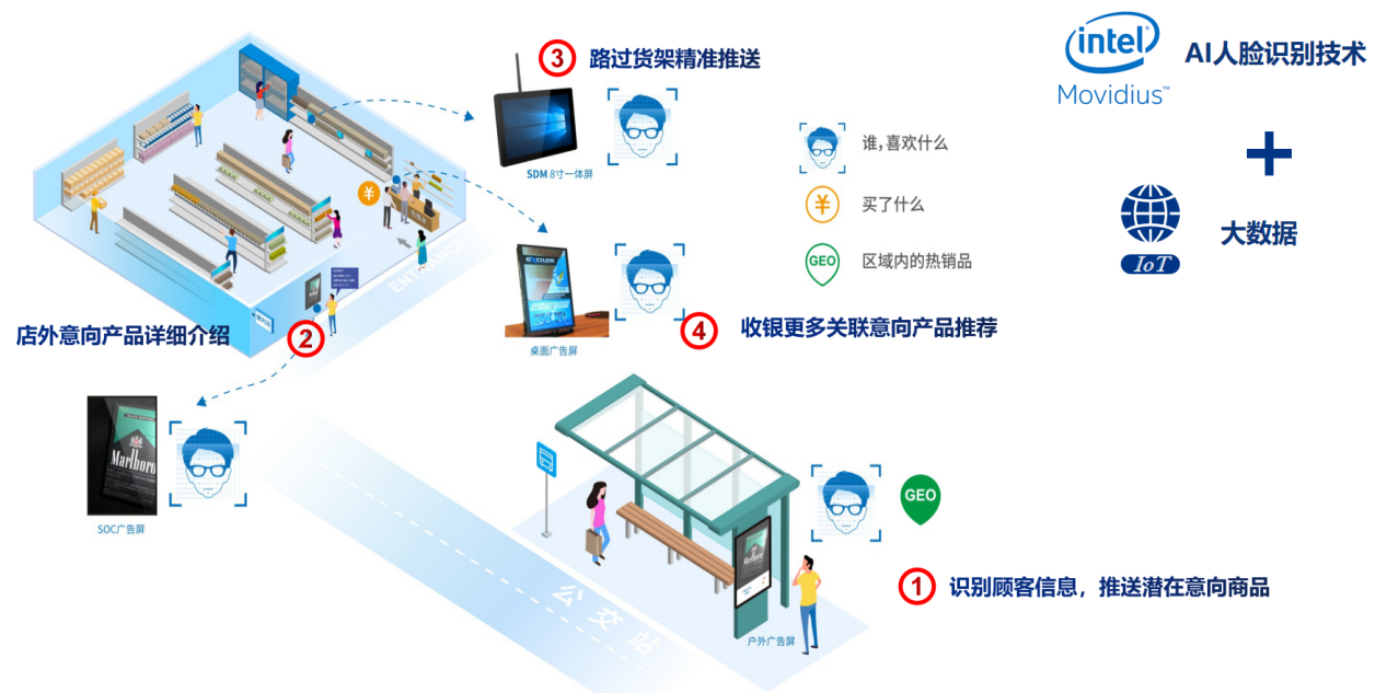 为了更好的迎合产业发展的趋势,对产业输出新鲜的营销理念和模式,驱动零售业数字化、智慧化管理模式的进一步升级,JDB电子科技集成了Intel®Movidius视觉识别技术和OpenVINOTM人工智能视觉学习技术,自主研发了JDB电子GDSM智慧商显平台。更凭借多年硬件开发经验,形成一套完整、切实的精准营销方案,获得了Intel®MRS市场方案认证。