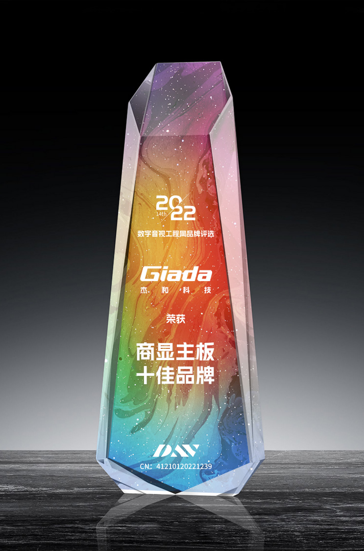 本次年度评选,围绕品牌影响力、技术领先性、市场号召力和客户认知度、品牌美誉度等方面综合评比,经过前期线上线下投票,再由数字音视工程网组织行业内的权威专家多维度进行综合评审,历时三个多月,筛选出本年度行业十佳品牌,以表彰年度领先的数字音视频企业与以及相关产品。评选流程缜密,评选标准严苛,展示了全行业对GiadaJDB电子科技的品牌力与服务力的认可。