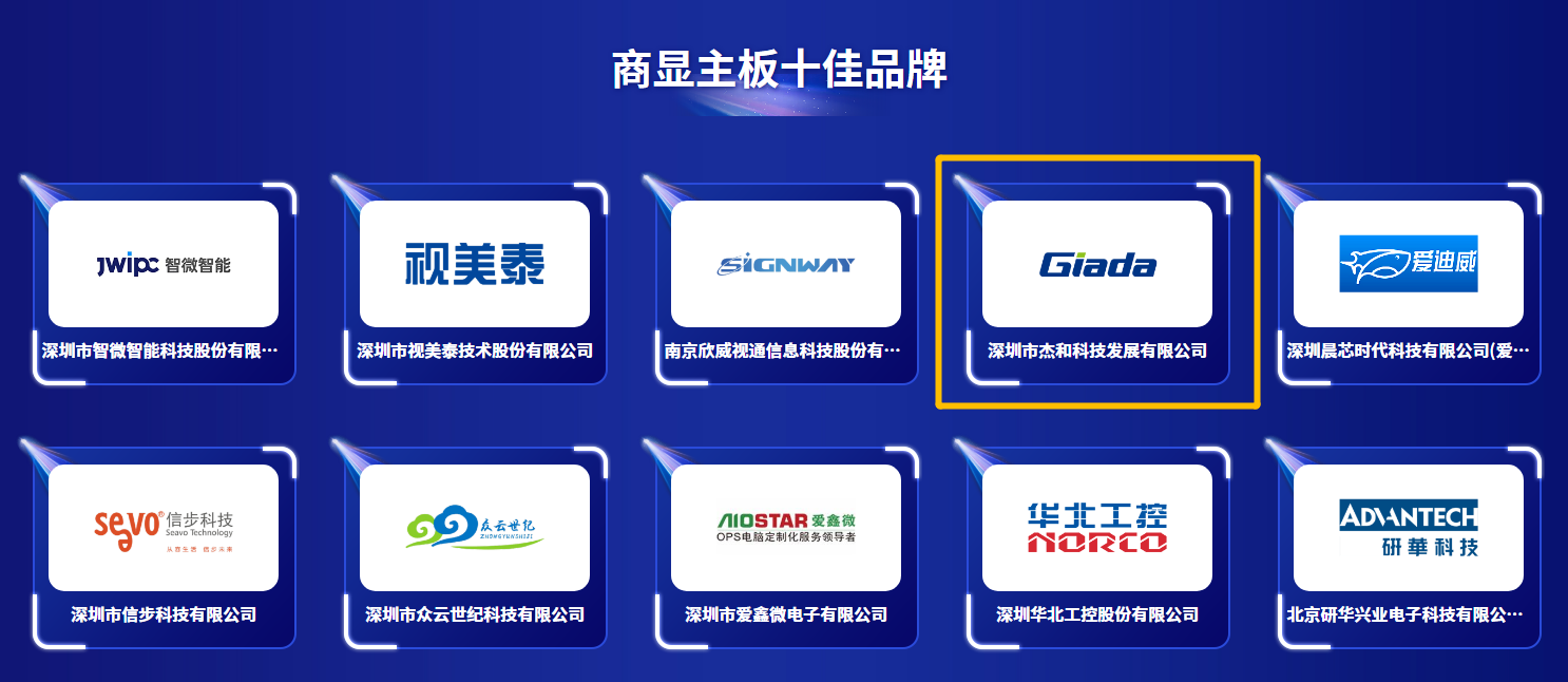 「商显主板十佳品牌」「数字标牌播放器十佳品牌」