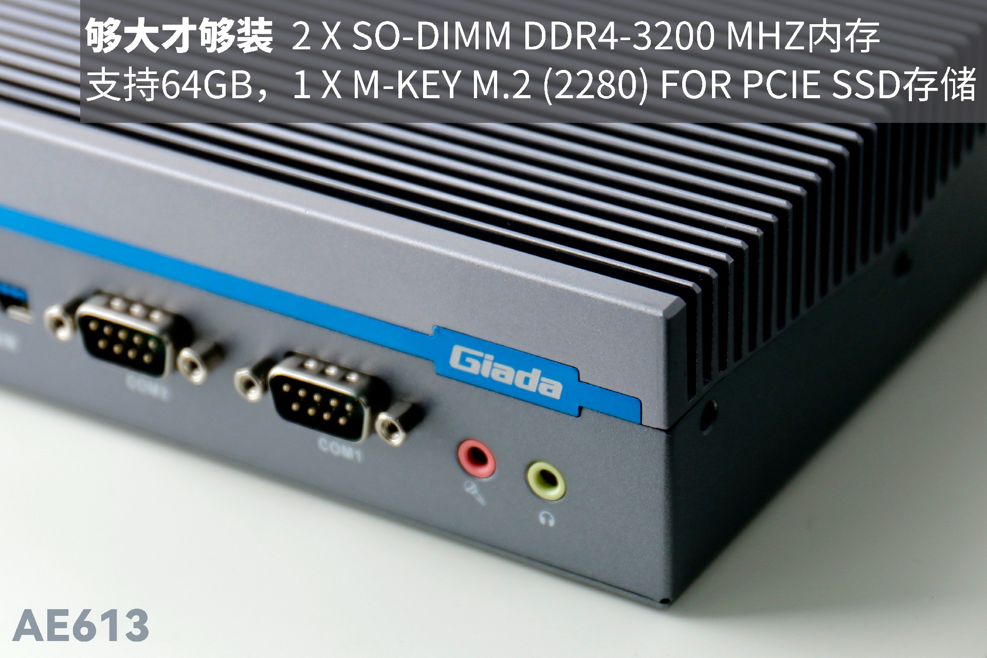 JDB电子AE613拥有2 x SO-DIMM DDR4-3200 MHz内存、1 x M-Key M.2 (2280) for PCIe SSD存储,最大支持64GB,无论是处理复杂的多任务环境、还是运行高负载的软件都游刃有余。
